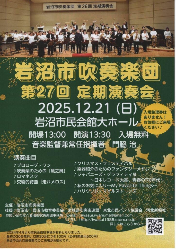 岩沼市吹奏楽団・槻木ウインズサークル・白石市民吹奏楽団の演奏会です!